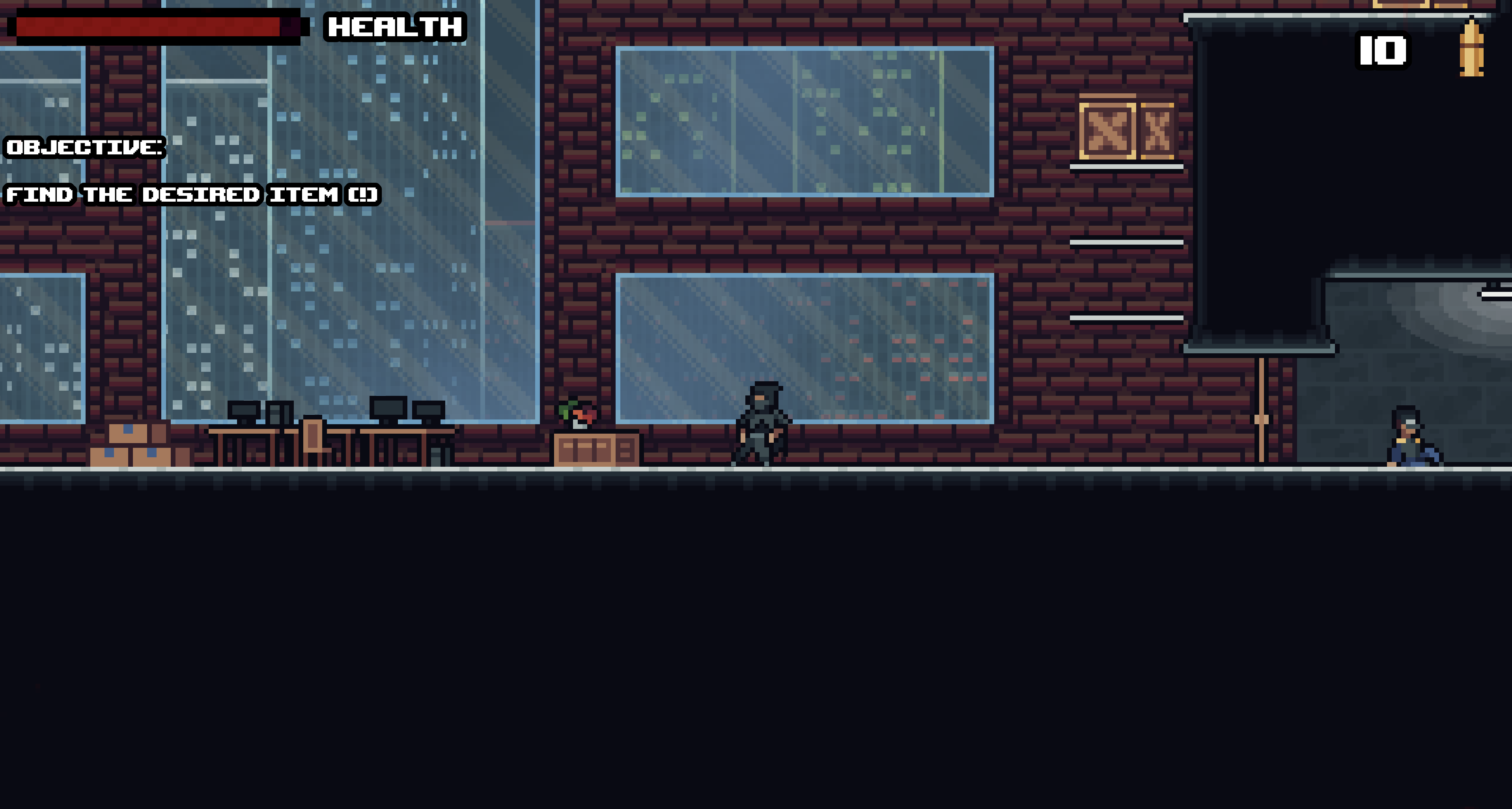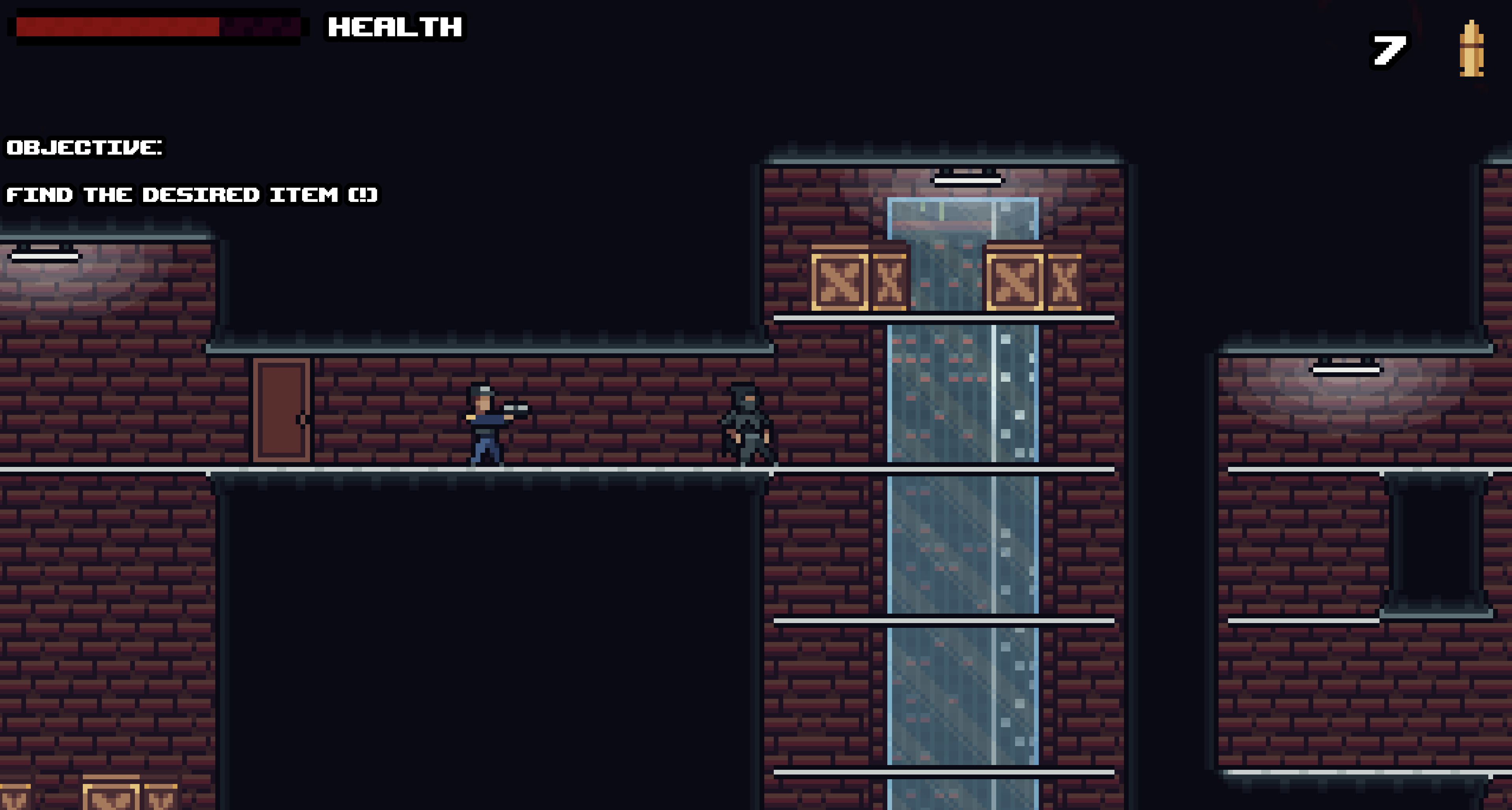 pretty cool game, I like the pistol raise animation. I died on the the top roof to the last guard after I stole the item on my first run. Then I just skipped all the boxes and enemies as best I could because I couldn't tell what had a bomb or health.